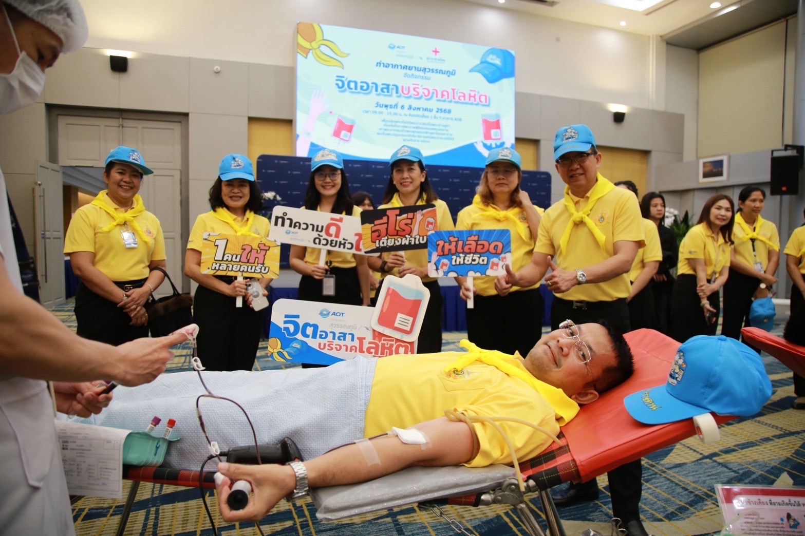 วันนี้ (6 สิงหาคม 2568) นายกิตติพงศ์ กิตติขจร ผู้อำนวยการท่าอากาศยานสุวรรณภูมิ บริษัท ท่าอากาศยานไทย จำกัด (มหาชน) (AOT) เป็นประธานเปิดกิจกรรม “จิตอาสาบริจาคโลหิต ประจำปี 2568” พร้อมร่วมบริจาคโลหิต โดยมีคณะผู้บริหาร พนักงาน และลูกจ้างจากหน่วยงานต่าง ๆ ภายในท่าอากาศยานสุวรรณภูมิ (ทสภ.) เข้าร่วมกิจกรรมอย่างพร้อมเพรียง ที่ห้องจัดเลี้ยง 1 ชั้น 5 อาคารสำนักงานท่าอากาศยานสุวรรณภูมิ (AOB)