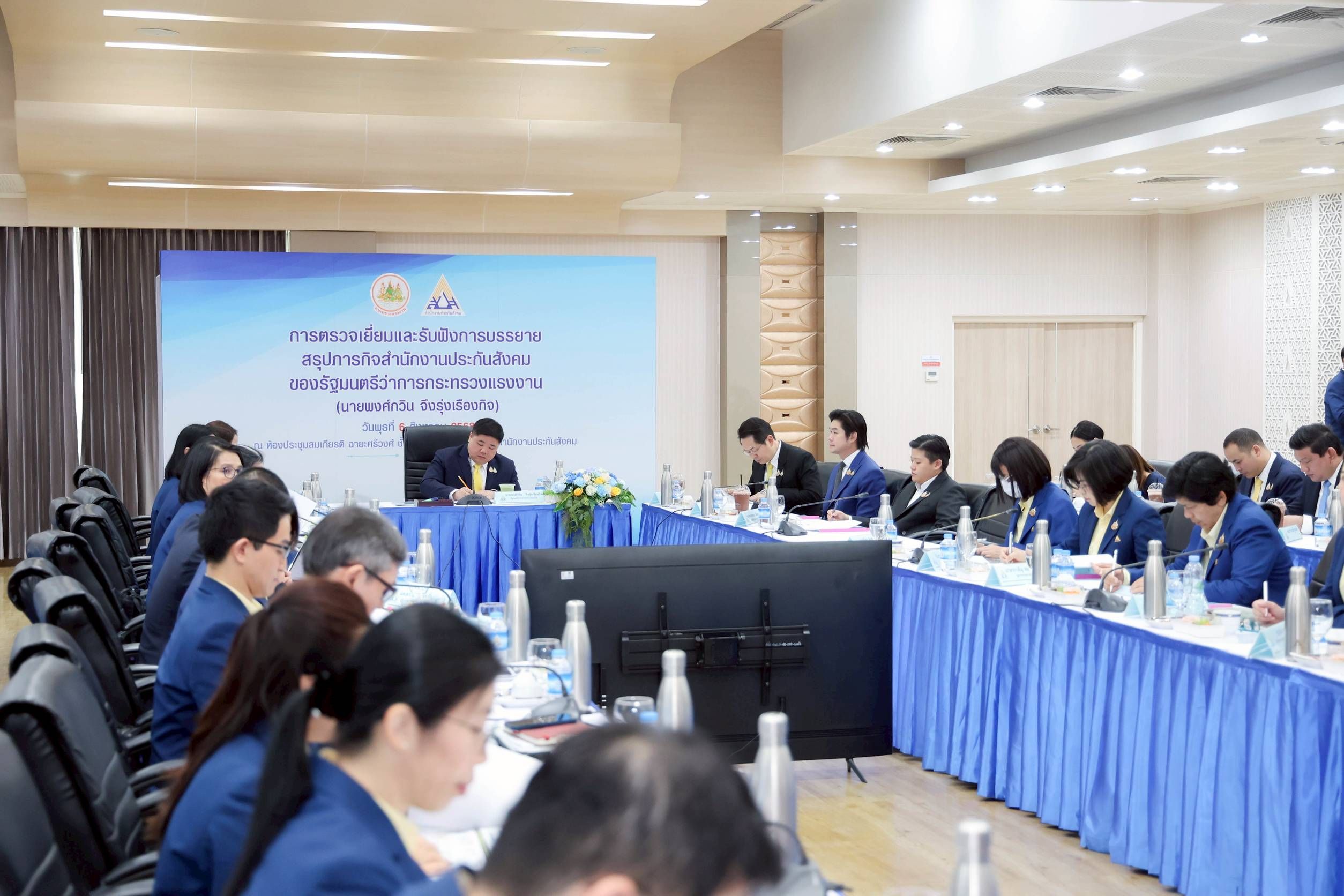 นายพงศ์กวิน จึงรุ่งเรืองกิจ รัฐมนตรีว่าการกระทรวงแรงงาน กล่าวถึงการดำเนินงานของสำนักงานประกันสังคมที่ให้ความคุ้มครองแรงงานด้วยสิทธิประโยชน์กองทุนประกันสังคมและกองทุนเงินทดแทน ตามนโยบายกระทรวงแรงงาน “กระทรวงแรงงาน เพื่อโอกาสแรงงานไทย” ที่เน้นย้ำการคุ้มครองแรงงานอย่างเท่าเทียม และสร้างโอกาสทางเศรษฐกิจด้วยการยกระดับรายได้ให้แก่แรงงานไทย ทั้งนี้ รัฐมนตรีว่าการกระทรวงแรงงาน ยังได้เน้นย้ำถึงการเยียวยาผู้ประกอบการ และดูแลลูกจ้างจากสถานการณ์ความไม่สงบในพื้นที่ชายแดนไทย – กัมพูชา โดยได้กำชับให้สำนักงานประกันสังคมเร่งดำเนินการจ่ายสิทธิประโยชน์กรณีว่างงานสุดวิสัย ให้แล้วเสร็จภายในเดือนกันยายนนี้ เพื่อเป็นการแบ่งเบาภาระผู้ที่ได้รับผลกระทบจากเหตุการณ์ดังกล่าว ด้านการสร้างเสถียรภาพและความยั่งยืนของกองทุน ได้เน้นย้ำให้สำนักงานประกันสังคมพิจารณาการลงทุนตามภาพรวมเศรษฐกิจของประเทศ รวมถึงการพิจารณาเพิ่มสิทธิประโยชน์กรณีต่างๆ ให้สอดคล้องกับค่าครองชีพและสภาพเศรษฐกิจในยุคปัจจุบันอีกด้วย