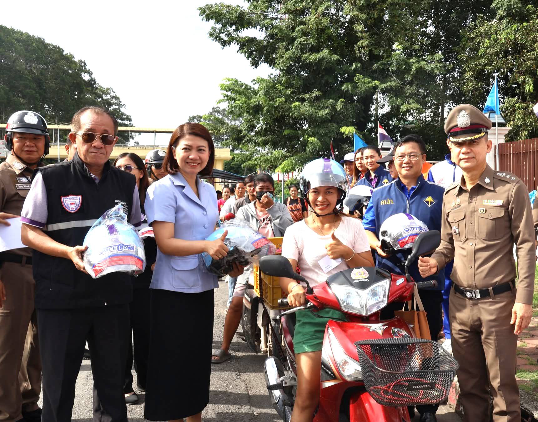 จากนั้นได้มีการแจกหมวกนิรภัยให้กับประชาชนทุกคนที่มาร่วมในกิจกรรม โดยมีวัตถุประสงค์เพื่อต้องการให้ประชาชนทุกคนมีความตระหนักในเรื่องของความปลอดภัยในเรื่องของการสวมหมวกนิรภัยในเวลาขับขี่เวลาเกิดอุบัติเหตุถ้าสวมหมวกนิรภัยก็จะสามารถช่วยเหลือได้จากหนักเป็นเบา หรืออาจจะไม่ได้รับอันตรายด้วย.