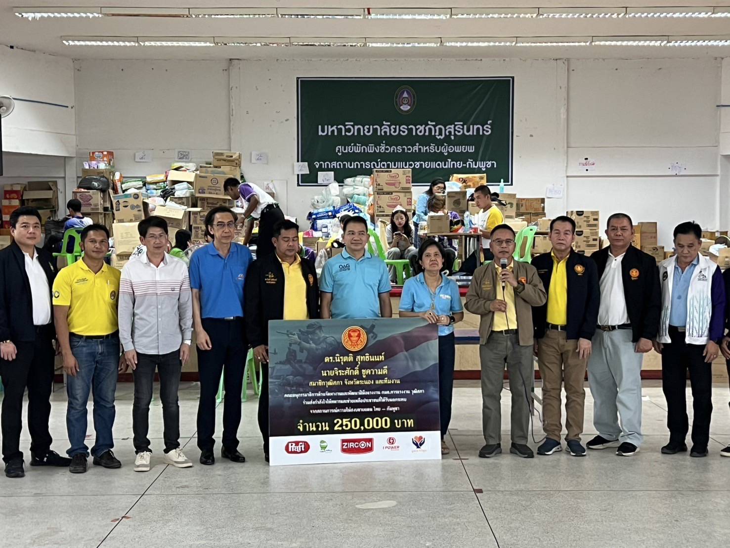 โดย ดร.นิรุตติ สุทธินนท์ และนายจิระศักดิ์ ชูความดี สมาชิกวุฒิสภา จังหวัดระนอง และทีมงาน ตลอดถึงคณะอนุกรรมาธิการและที่ปรึกษาในคณะอนุกรรมาธิการด้านจัดหางานและพัฒนาฝีมือแรงงาน วุฒิสภา หน่วยงานเอกชน อาทิ บริษัท เซอร์คอน พาวเวอร์ โซลูชั่น จำกัด มูลนิธิทีวีพูล บริษัท ผลไม้กระป๋องประจวบ จำกัด บริษัท CO CO Walk จำกัด และบริษัท ไอพาวเวอร์ จำกัด ได้รวบรวมของอุปโภคบริโภคมูลค่า 250,000 บาท เพื่อมอบแก่ทหารกองบัญชาการกองกำลังสุรนารี และศูนย์อพยพมหาวิทยาลัยราชภัฏสุรินทร์ จ.สุรินทร์.