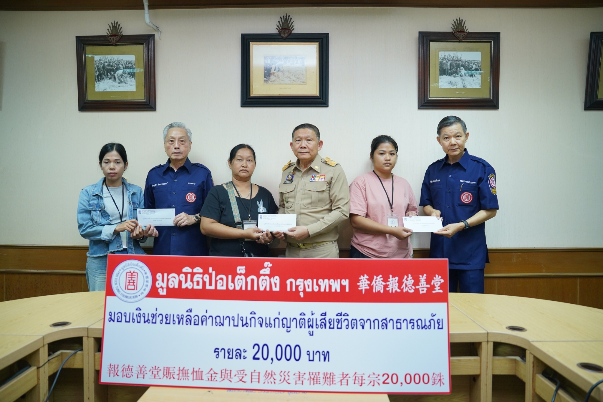 มูลนิธิป่อเต็กตึ๊ง ซับน้ำตา บรรเทาทุกข์ - เยียวยาผู้บาดเจ็บ และมอบเงินช่วยเหลือค่าฌาปนกิจแก่ญาติผู้เสียชีวิตจากเหตุโรงงานพลุระเบิดที่สุพรรณบุรี