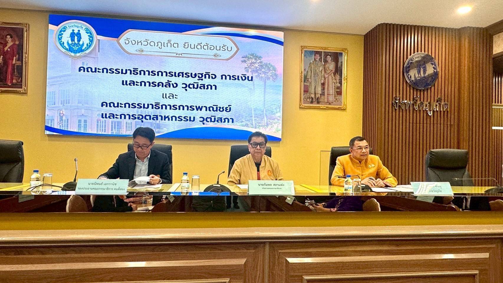 เมื่อวันที่ 21 ส.ค. ที่ห้องประชุมเจ้าฟ้า (ชั้น 5) ศาลากลางจังหวัดภูเก็ต คณะกรรมาธิการ (กมธ.)การพาณิชย์และการอุตสาหกรรม วุฒิสภา นำโดยนายนิพนธ์ เอกวานิช รองประธานคณะกรรมาธิการ คนที่สอง และประธานคณะอนุกรรมาธิการพิจารณาศึกษากลไกและแนวทางการส่งเสริมผู้ประกอบการ SMEs พร้อมด้วยนายกัมพล สุภาแพ่ง ประธานคณะกรรมาธิการการเศรษฐกิจ การเงินและการคลัง วุฒิสภา และกรรมาธิการ อนุกรรมาธิการพิจารณาศึกษากลไกและแนวทางการส่งเสริมผู้ประกอบการ SMEs เดินทางลงพื้นที่เพื่อประชุมหารือกับส่วนราชการ โดยมีนายธีระพงศ์ ช่วยชู ปลัดจังหวัดภูเก็ต พร้อมด้วยหัวหน้าส่วนราชการ ภาคเอกชนที่เกี่ยวข้อง และผู้ประกอบการโรงแรมให้การต้อนรับ