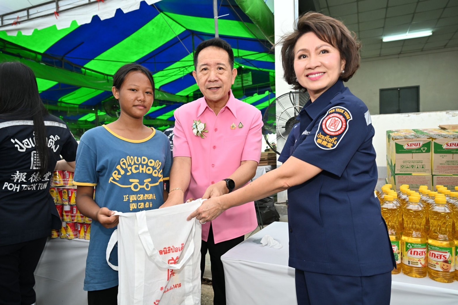 ภายในงานมูลนิธิป่อเต็กตึ๊งได้จัดเจ้าหน้าที่ – อาสาสมัครมูลนิธิฯ ดูแลอำนวยความสะดวกแก่ประชาชนที่มารอรับ พร้อมบริการอาหารและน้ำดื่ม รวมถึงจัดหน่วยแพทย์สงเคราะห์ชุมชน (หน่วยแพทย์เคลื่อนที่) ออกบริการประชาชน โดยมีคณะอาสาสมัครเฉพาะกิจ และอาสาสมัครศิลปิน อาทิ นายธวัชชัย คชาอนันต์ (แฮ็ค ชวนชื่น)นายฐานัตถ์ จิรรัชชกิจ (บูม) นายรัชต์พงษ์ ทองทับ (น้าทูล) นายรชต โชติมิตรจตุรผล (ตั๊ก) นายปิยะวัฒน์ รัตนหรูวิจิตร (หรูหรา) ร่วมสร้างสีสันภายในงาน โดยบรรยากาศเต็มไปด้วยความอิ่มเอมใจทั้งผู้ให้และผู้รับ