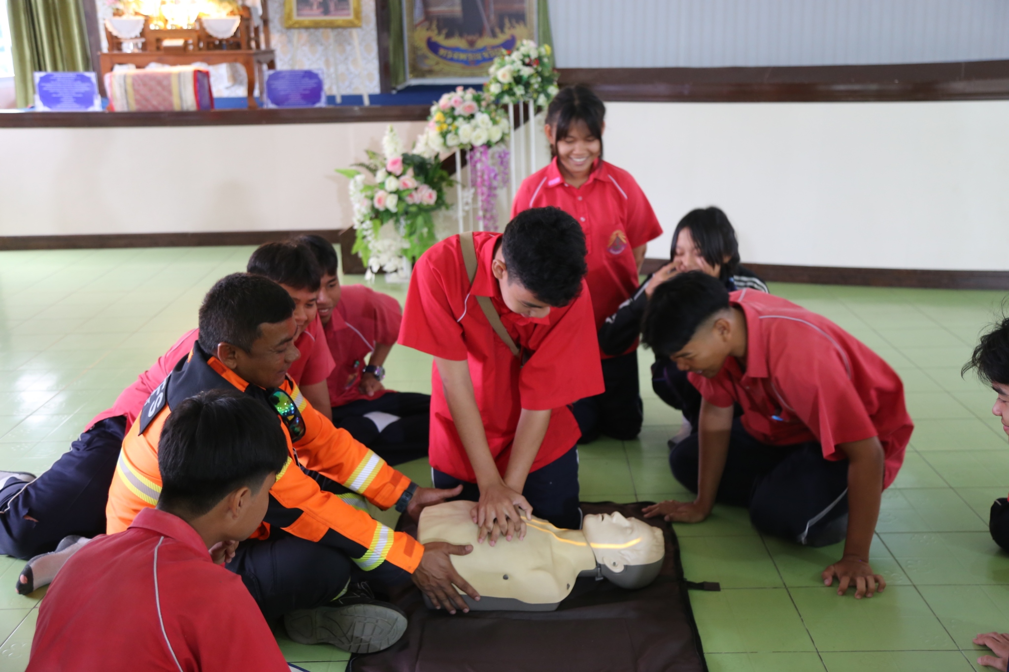 โดยมีวิทยากรผู้เชี่ยวชาญจากฝ่ายการแพทย์ รวมถึงฝ่ายดับเพลิงและกู้ภัย ร่วมเป็นวิทยากรและจัดกิจกรรมให้แก่นักเรียนโรงเรียนวัดสังฆราชา ผู้นำชุมชนเขตลาดกระบัง รวมทั้งสิ้น 66 คน พร้อมกันนี้ ทสภ. ได้มอบตู้ยาสามัญ กระเป๋า พร้อมชุดอุปกรณ์ปฐมพยาบาล โดยมี น.ส.ณภัค เข็มแก้ว รองผู้อำนวยการโรงเรียนฯ เป็นผู้รับมอบ เพื่อเป็นการเตรียมความพร้อมด้านความปลอดภัยการรับมือและช่วยเหลือในกรณีเกิดเหตุฉุกเฉิน นอกจากนี้ ทสภ. ยังได้มอบเตียงสำหรับห้องปฐมพยาบาล ชุดปฐมพยาบาลพร้อมตู้จัดเก็บ ให้แก่ชุมชนในเขตลาดกระบัง จำนวน 3 ชุมชน ได้แก่ชุมชนวัดสังฆราชา ชุมชนเทอดศาสนา และชุมชนประชาทรด้วย