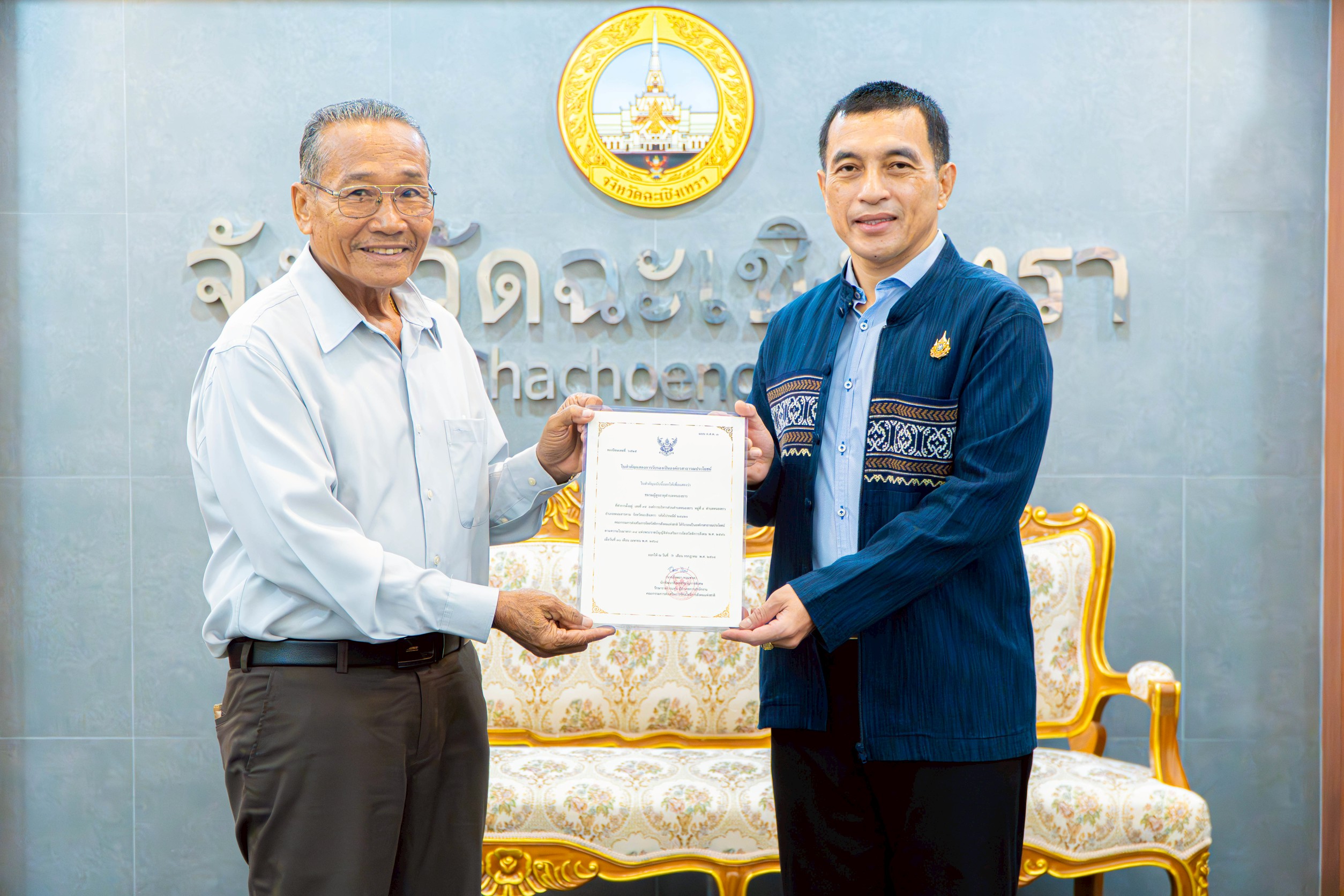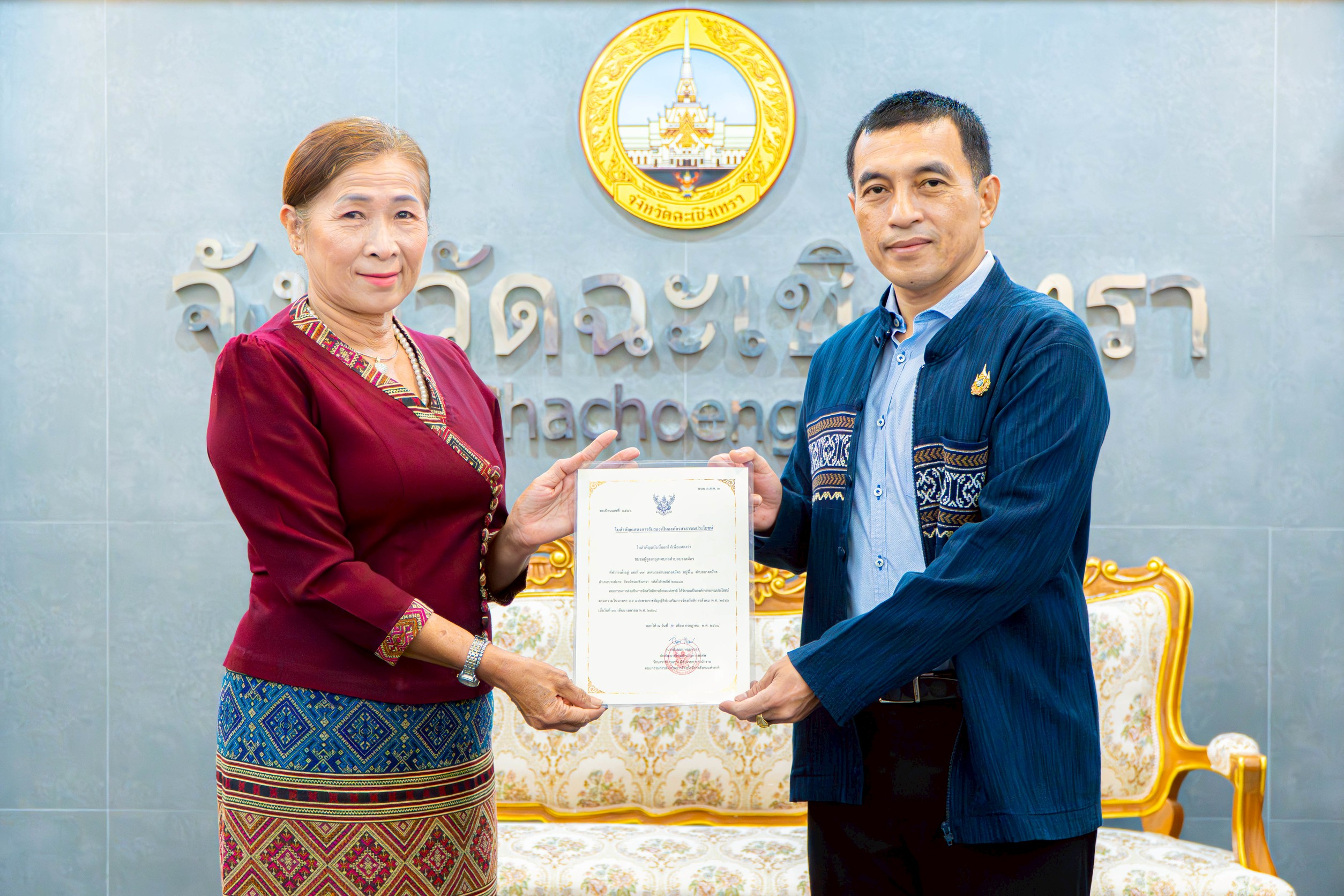 พ่อเมืองฉะเชิงเทรา มอบใบสำคัญรับรององค์กรสาธารณประโยชน์ และยกย่องศูนย์พัฒนาคุณภาพชีวิตผู้สูงอายุ