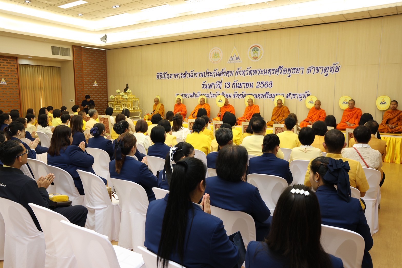 เมื่อเวลา 10.00 น.วันที่ 13 ก.ย.นางสาวบุปผา เรืองสุด เลขาธิการสำนักงานประกันสังคม เป็นประธานในพิธีเปิดอาคารสำนักงานประกันสังคมจังหวัดพระนครศรีอยุธยา สาขาอุทัย โดยมีนายประพันธ์ ตรีบุบผา รองผู้ว่าราชการจังหวัดพระนครศรีอยุธยา ผู้บริหารกระทรวงแรงงาน ผู้บริหารสำนักงานประกันสังคม หัวหน้าส่วนราชการจังหวัดพระนครศรีอยุธยา ผู้บริหารสถานประกอบการ และสถานพยาบาลในพื้นที่ ภาคีเครือข่ายประกันสังคม สื่อมวลชน และเจ้าหน้าที่สำนักงานประกันสังคม เข้าร่วมพิธีที่ ต.คานหาม อ.อุทัย จ.พระนครศรีอยุธยา