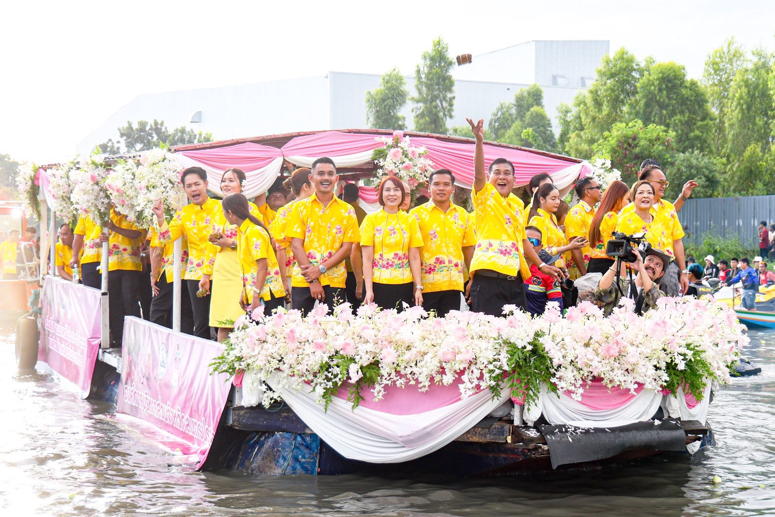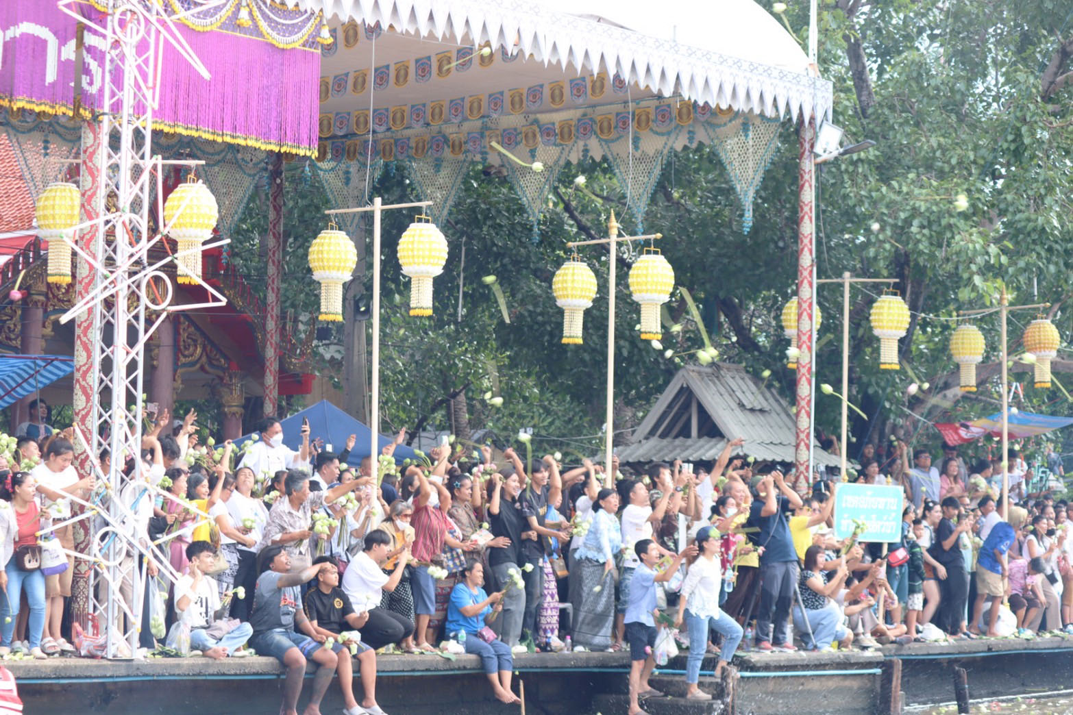 โดยมีนายสุนทร ปานแสงทอง นายกองค์การบริหารส่วนจังหวัดสมุทรปราการ นำคณะผู้บริหาร และ ส.อบจ.ล่องเรือไปตามคลองสำโรง เพื่อโยนข้าวต้มมัด น้ำดื่ม ไข่ต้มให้กับประชาชนริมสองฝั่งคลองสำโรง ซึ่งเป็นสิ่งของมงคลของหลวงพ่อโตวัดบางพลีใหญ่ใน บรรยากาศเป็นไปด้วยรอยยิ้ม และความอบอุ่น โดยมีขบวนเรือแห่จากหน่วยงานต่าง ๆ เข้าร่วมขบวนจำนวนมากท่ามกลางความตื่นตาตื่นใจของนักท่องเที่ยวทั้งชาวไทยและชาวต่างชาติ