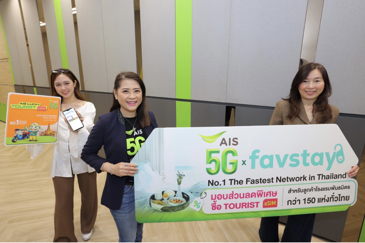AIS 5G จับมือ favstay ยกระดับประสบการณ์ท่องเที่ยวไทยครบวงจร มอบส่วนลด AIS TOURIST eSIM 20% ให้ลูกค้าเต็มอิ่มทริปพักผ่อนพร้อมเชื่อมต่อไม่มีสะดุด พร้อมต้อนรับนักท่องเที่ยวช่วงไฮซีซัน
