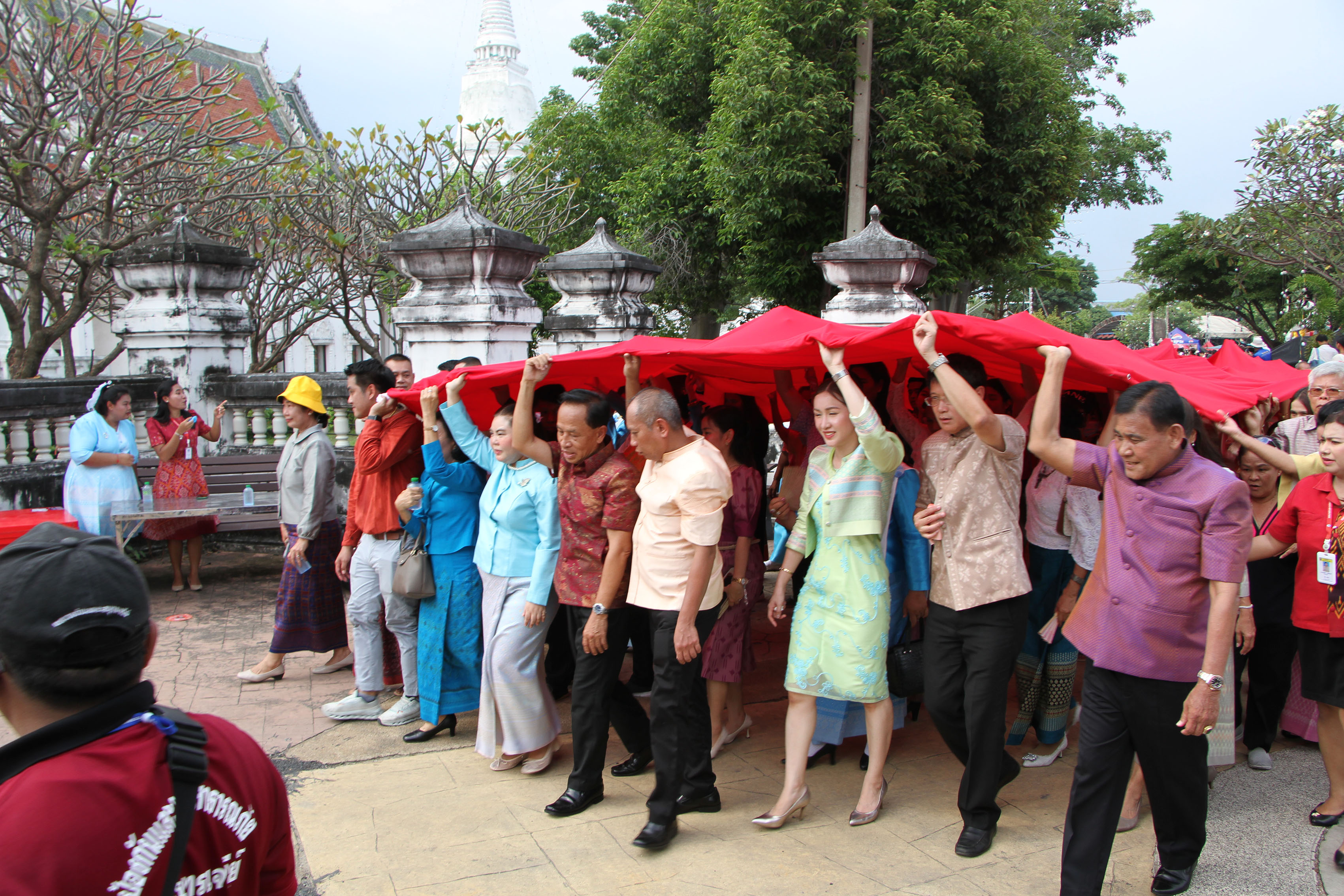 เมื่อเวลา 15.00 น.วันที่ 12 ต.ค.ที่ผ่านมา นายสยาม ศิริมงคล ผู้ว่าราชการจังหวัดสมุทรปราการ เป็นประธานอัญเชิญผ้าแดงห่มองค์พระสมุทรเจดีย์ โดยมีนางอรจิรา ศิริมงคล นายกเหล่ากาชาดจังหวัดสมุทรปราการ นายประทีป นทีทวีวัฒน์ นายณัชวันก์ อัลภาชน์ เตชะเสน รองผู้ว่าฯสมุทรปราการ นายสุนทร ปานแสงทอง นายก อบจ.สมุทรปราการพร้อมคณะ รวมทั้งหน้าส่วนราชการ องค์กรปกครองส่วนท้องถิ่น ประชาชนในพื้นที่ และนักท่องเที่ยวร่วมทำพิธีทักษิณาวรรต รอบองค์พระสมุทรเจดีย์ 3 รอบ เพื่อสักการะพระบรมสารีริกธาตุ 12 องค์ ขององค์สมเด็จพระสัมมาสัมพุทธเจ้า ซึ่งบรรจุอยู่ภายในองค์พระสมุทรเจดีย์ ก่อนที่จะส่งมอบให้กับผู้ประกอบพิธีห่มผ้าองค์พระสมุทรเจดีย์ ซึ่งเป็นสมาชิกในตระกูลรุ่งแจ้ง นำขึ้นไปห่มบนคอระฆังขององค์พระสมุทรเจดีย์ สำหรับพิธีดังกล่าวจะจัดขึ้นเป็นประจำทุกปี ในวันแรม 5 ค่ำ เดือน 11 ซึ่งปีนี้ตรงกับวันที่ 12 ต.ค.68