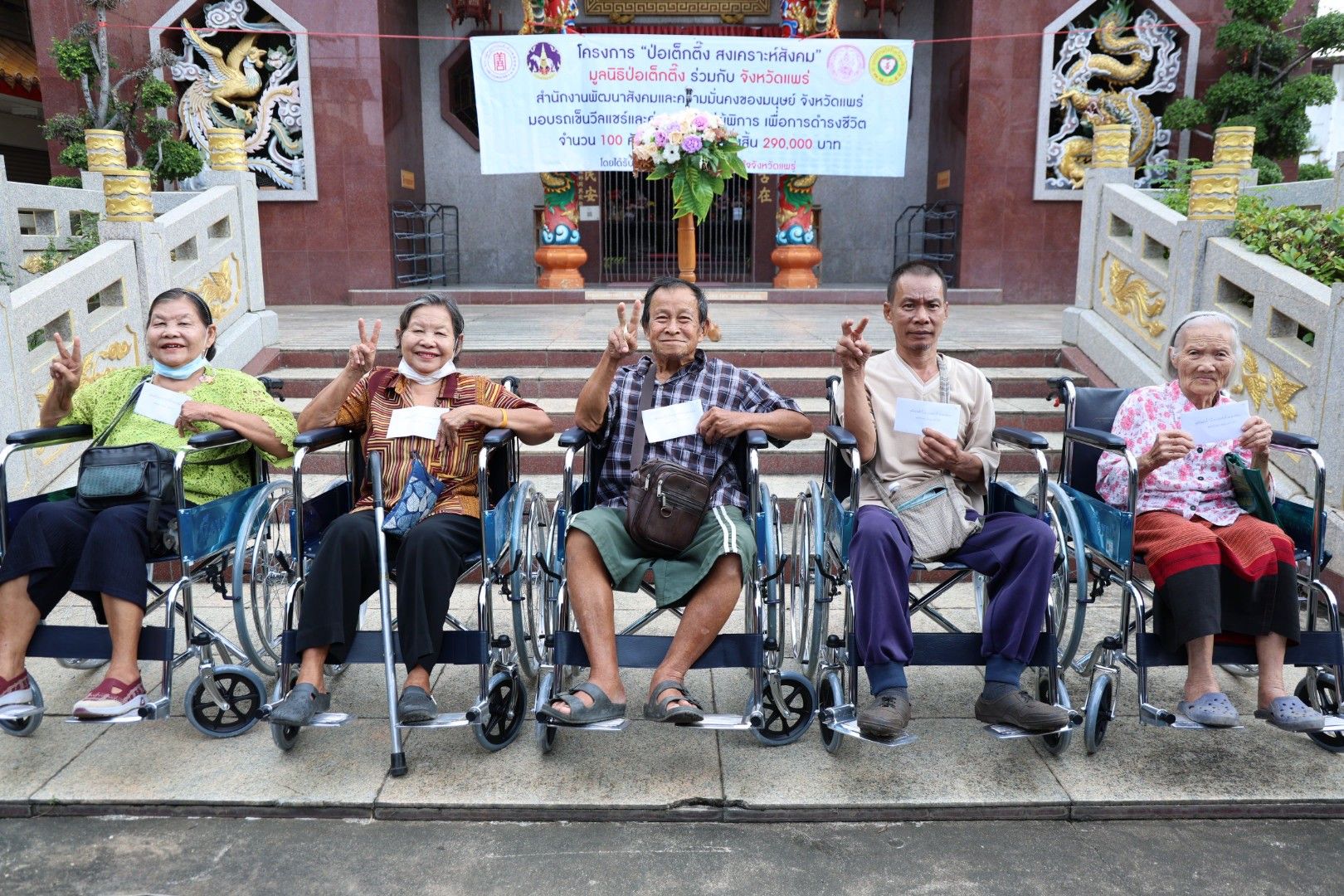 มูลนิธิป่อเต็กตึ๊ง ขยายความช่วยเหลือผู้พิการด้อยโอกาส มอบรถเข็นวีลแชร์แก่ผู้พิการในพื้นที่จังหวัดบุรีรัมย์ ชัยภูมิ แพร่ และกำแพงเพชร รวม 400 คันพร้อมค่าพาหนะ รวมมูลค่ากว่า 1.16 ล้านบาท