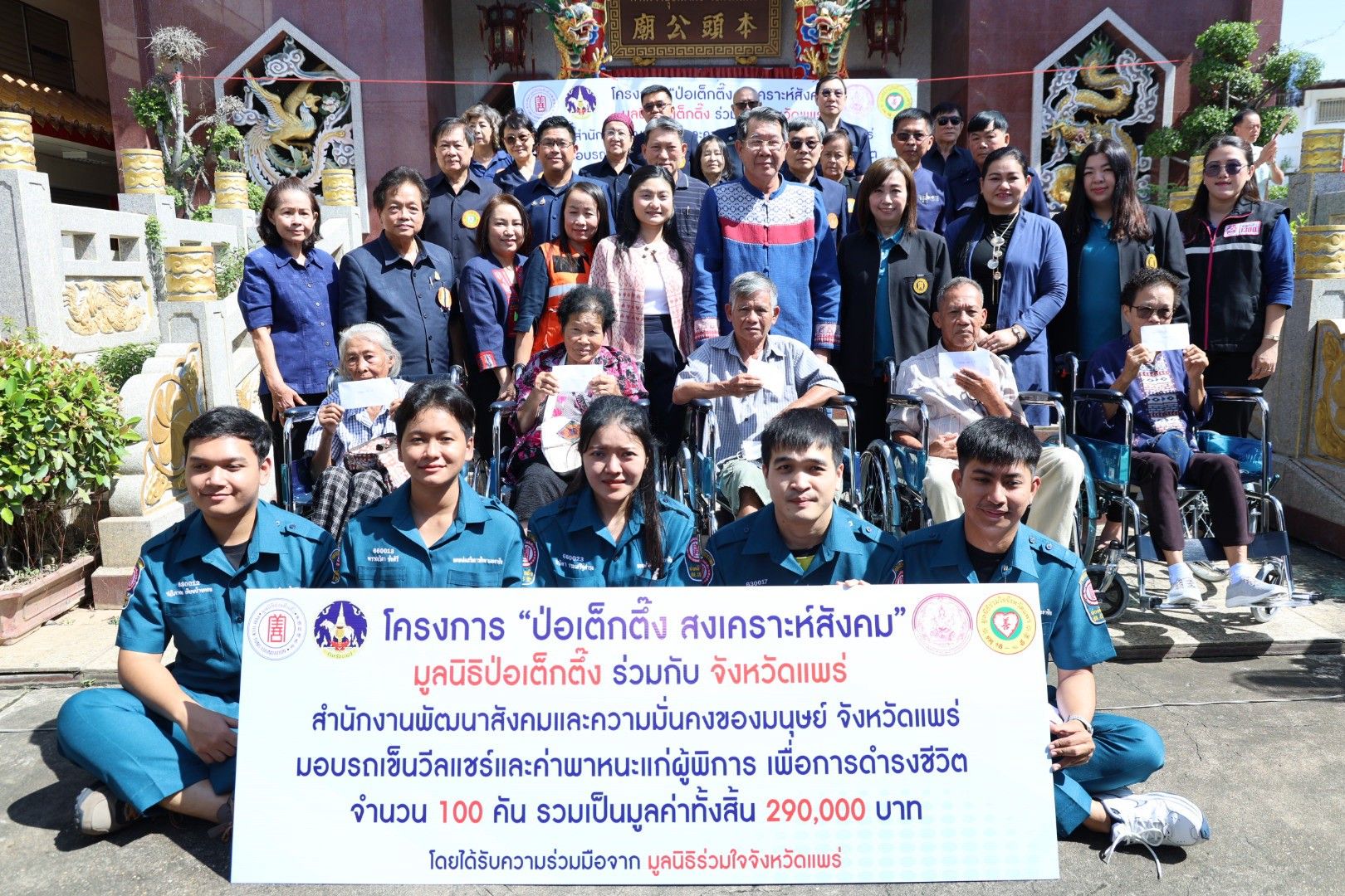 มูลนิธิป่อเต็กตึ๊ง ขยายความช่วยเหลือผู้พิการด้อยโอกาส มอบรถเข็นวีลแชร์แก่ผู้พิการในพื้นที่จังหวัดบุรีรัมย์ ชัยภูมิ แพร่ และกำแพงเพชร รวม 400 คันพร้อมค่าพาหนะ รวมมูลค่ากว่า 1.16 ล้านบาท