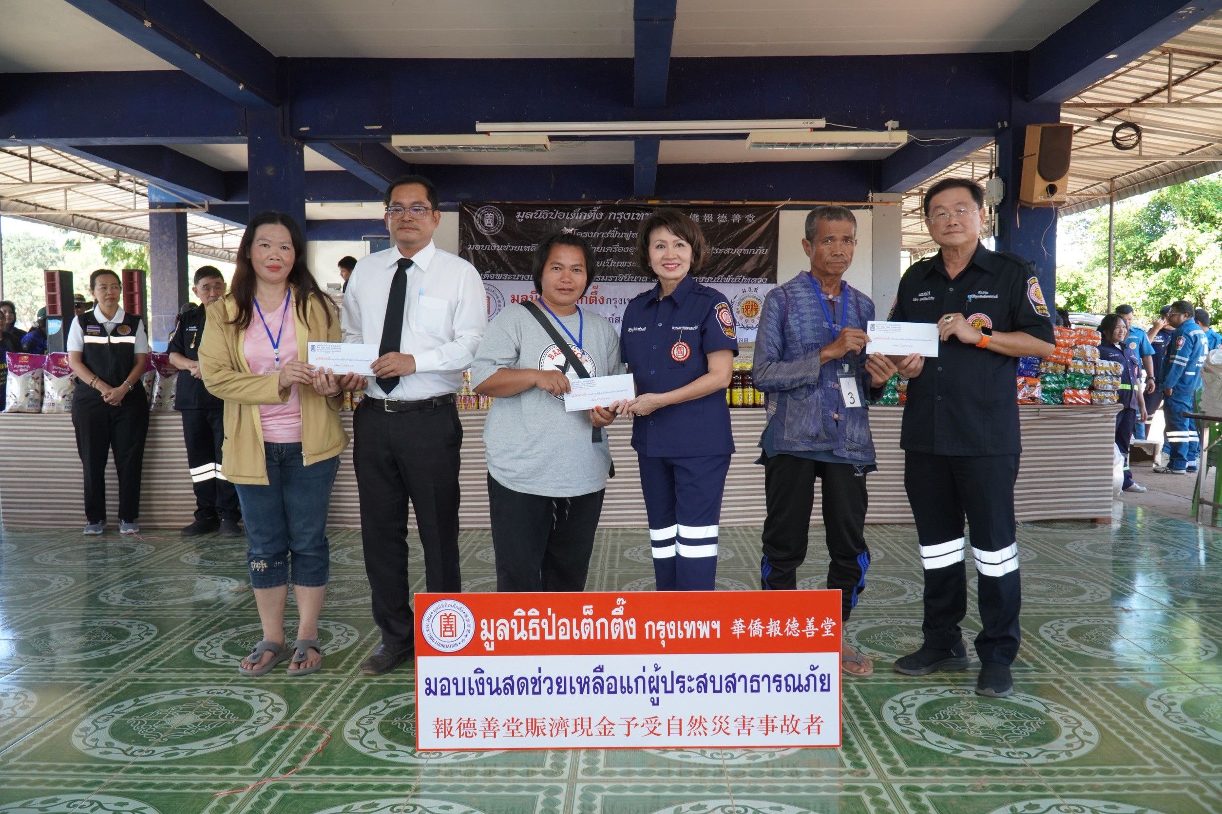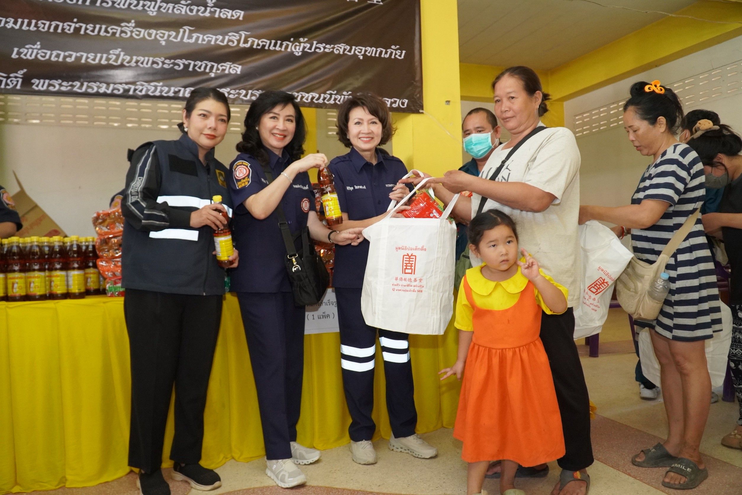 โดยแจกจ่ายเครื่องอุปโภค-บริโภค ประกอบด้วย ข้าวสาร ปลากระป๋อง บะหมี่กึ่งสำเร็จรูป น้ำมัน และน้ำปลา รวมจำนวน 5,500 ชุด ๆ ละ 450 บาท โดยในพื้นที่จังหวัดอุตรดิตถ์ มูลนิธิฯ ได้มอบเงินสงเคราะห์กรณีบ้านเรือนที่เสียหายจากอุทกภัย หลังละ12,000 บาท จำนวน 65 หลัง นอกจากนี้ในพื้นที่จังหวัดอยุธยาและอุตรดิตถ์ มูลนิธิฯ ได้มอบเงินสงเคราะห์ค่าฌาปนกิจให้แก่ญาติผู้เสียชีวิตรวมจำนวน 11 รายๆ ละ 20,000 บาท รวมงบประมาณการฟื้นฟูหลังน้ำลดในรอบนี้ทั้งสิ้น 3,475,000 บาท โดยมี ผู้แทนจากหน่วยงานรัฐเป็นประธานในพิธี พร้อมด้วย นางศิริพร โอภาสวงศ์ อาสาสมัครกิตติมศักดิ์มูลนิธิป่อเต็กตึ๊ง ร่วมลงพื้นที่แจกจ่ายและให้กำลังใจแก่ผู้ประสบภัย และสมาคม/มูลนิธิแต่ละจังหวัด เป็นผู้ประสานงานและร่วมให้ความช่วยเหลือ