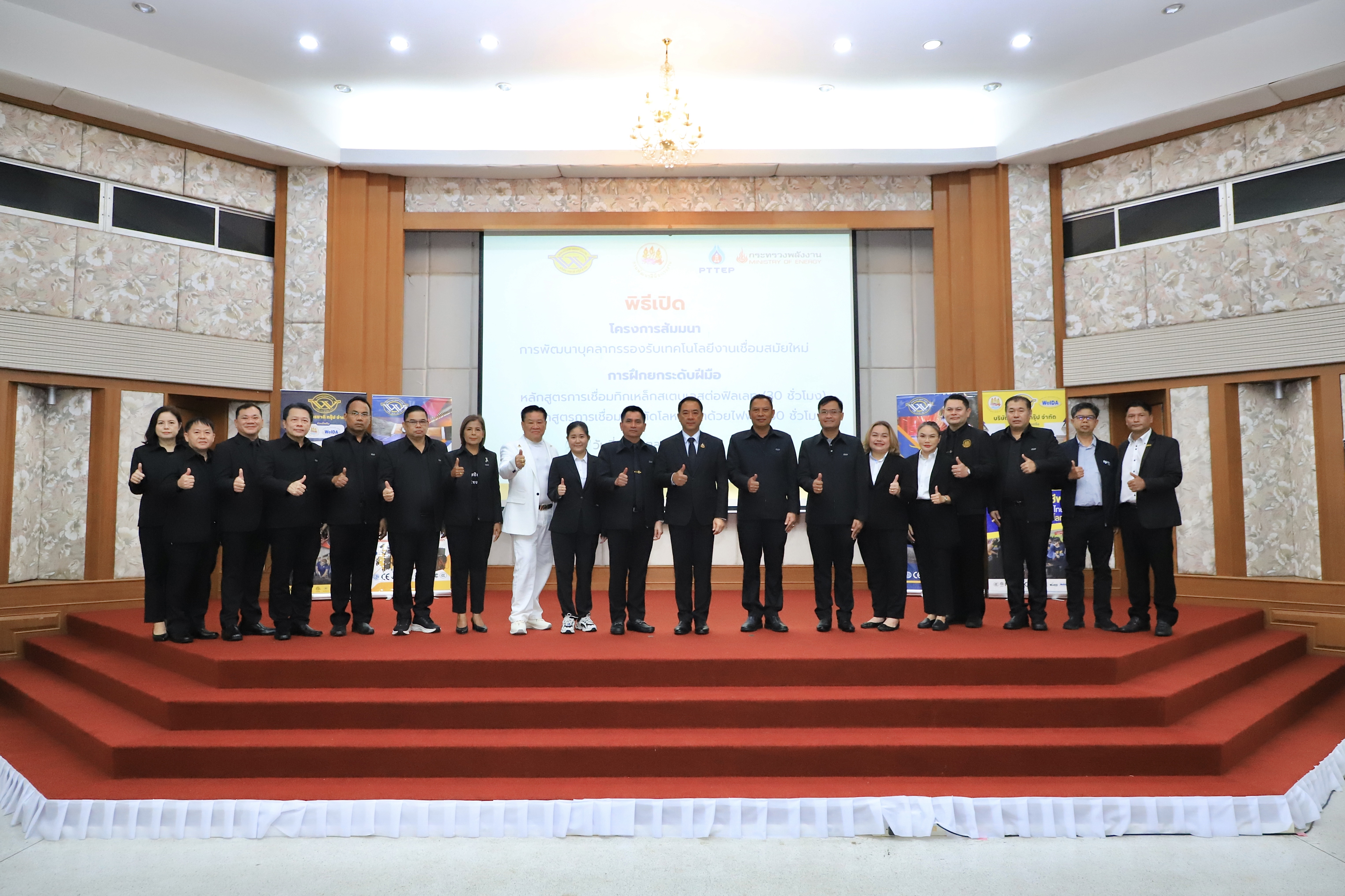 นอกจากนี้ขอขอบคุณบริษัท ปตท.สผ. เอนเนอร์ยี่ดีเวลลอปเมนท์ จำกัด และบริษัท วรชาติ กรุ๊ป จำกัด ที่ร่วมกันสนับสนุนงบประมาณการฝึกอบรม หลักสูตรการเชื่อมทิกเหล็กสเตนเลสต่อฟิลเลท และหลักสูตรการเชื่อมและตัดโลหะใต้น้ำด้วยไฟฟ้า ทำให้แรงงานไทยได้รับความรู้และประสบการณ์ตรง สามารถนำไปพัฒนาทักษะและต่อยอดสู่การปฏิบัติงานจริงได้อย่างมีประสิทธิภาพ.