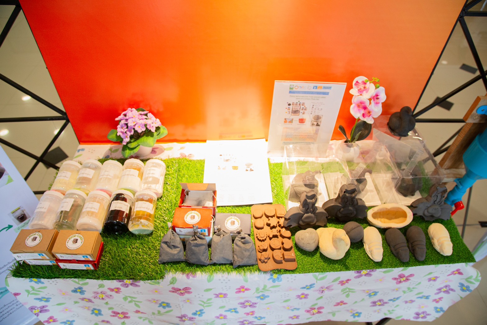 งานวิจัยชิ้นนี้นอกจากจะลดผลกระทบด้านสิ่งแวดล้อมแล้ว ทีมวิจัยยังต่อยอดแนวคิด Zero Waste ด้วยการนำถ่านกัมมันต์ที่ผ่านการใช้งานแล้วมาผสมกับน้ำยางพารา แล้วขึ้นรูปเป็น ตุ๊กตายางรูปแบบต่าง ๆ เช่น นกอีโก้ง และ หมูเด้ง ซึ่งใช้เป็นอุปกรณ์บริหารข้อนิ้วมือและป้องกันภาวะนิ้วล็อกในกลุ่มช่างสานกระจูด ซึ่งเป็นการพัฒนาผลิตภัณฑ์สุขภาพจาก เศษวัสดุเหลือใช้ ที่แสดงให้เห็นถึงความใส่ใจในสุขภาวะของผู้ประกอบอาชีพในชุมชน ผลงานวิจัยเพื่อความยั่งยืนนี้ได้ถูกนำไปจัดแสดงในงานประชุมระดับนานาชาติ World Technology Universities Congress 2025 (WTUC 2025) ตอกย้ำถึงศักยภาพของงานวิจัยท้องถิ่นที่สามารถขยายผลสู่ระดับโลก.