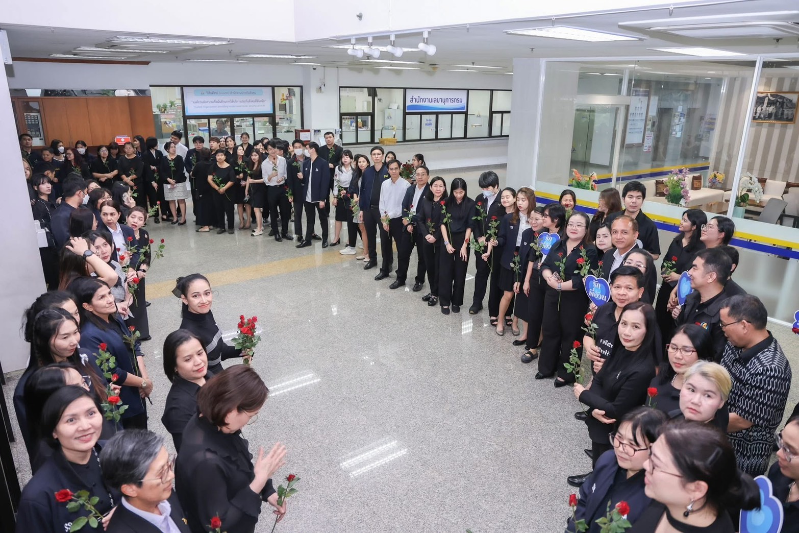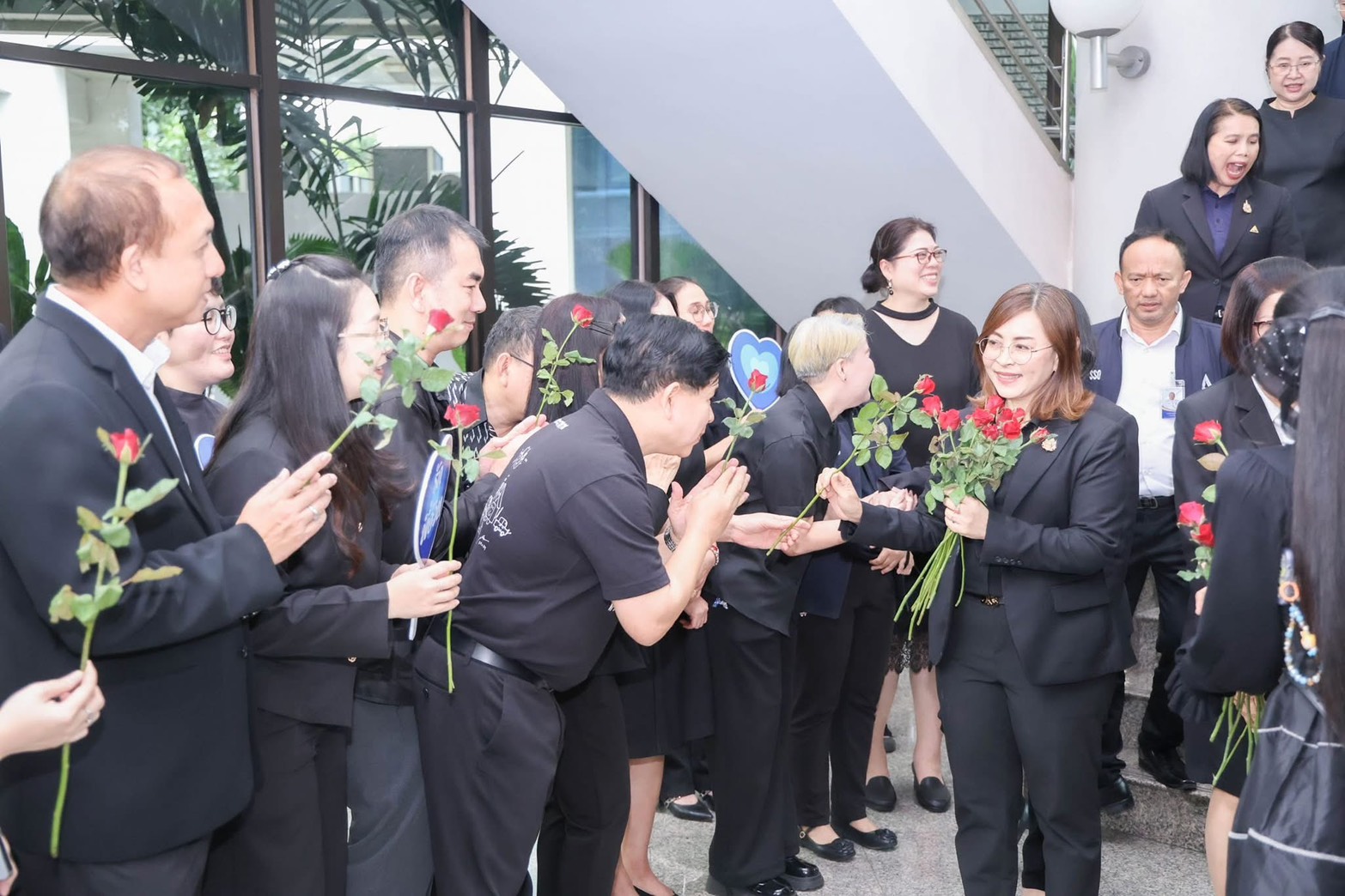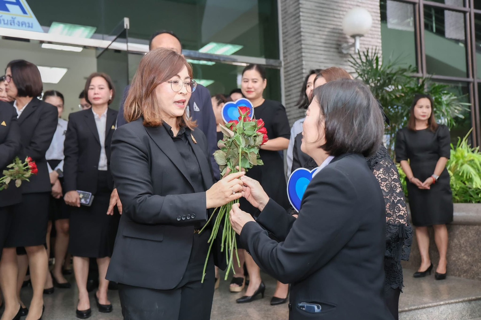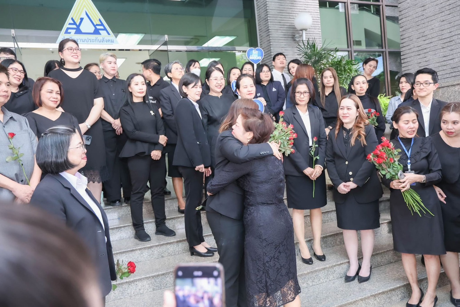 ด้วยรักและผูกพัน...แห่ส่ง "พี่อ้วน"บิ๊กขรก.น้ำดี...ชาว สปส.มอบดอกกุหลาบพร้อมป้ายข้อความอำลา เผยเป็นคนกันเอง-ไม่ถือตัว-ขยันทำงาน-โปร่งใส-สู้เพื่อลูกน้อง ทำให้มีแต่ผู้ใต้บังคับบัญชารักและเคารพ