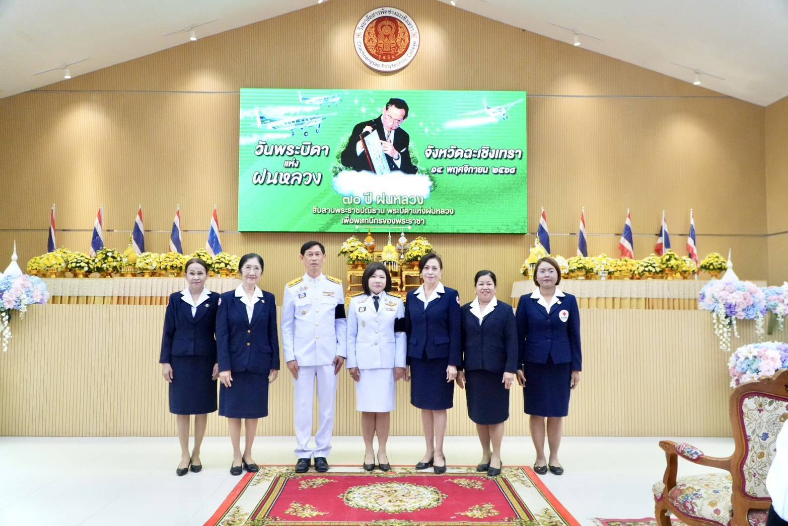 นางสาวฉัตรประอร นิยม รองผู้ว่าราชการจังหวัดฉะเชิงเทรา เป็นประธานในพิธีวางพานพุ่มดอกไม้สดถวายราชสักการะ น้อมรำลึกในพระมหากรุณาธิคุณ พระบาทสมเด็จพระบรมชนกาธิเบศร มหาภูมิพลอดุลยเดชมหาราช บรมนาถบพิตร เนื่องในวันพระบิดาแห่งฝนหลวง ประจำปี 2568 พร้อมด้วยนายประสิทธิ์ อินทโชติ รองผู้ว่าราชการจังหวัดฉะเชิงเทรา ข้าราชการ หน่วยงานที่เกี่ยวข้อง อาสาสมัครฝนหลวง และพสกนิกรชาวฉะเชิงเทรา ทุกหมู่เหล่า