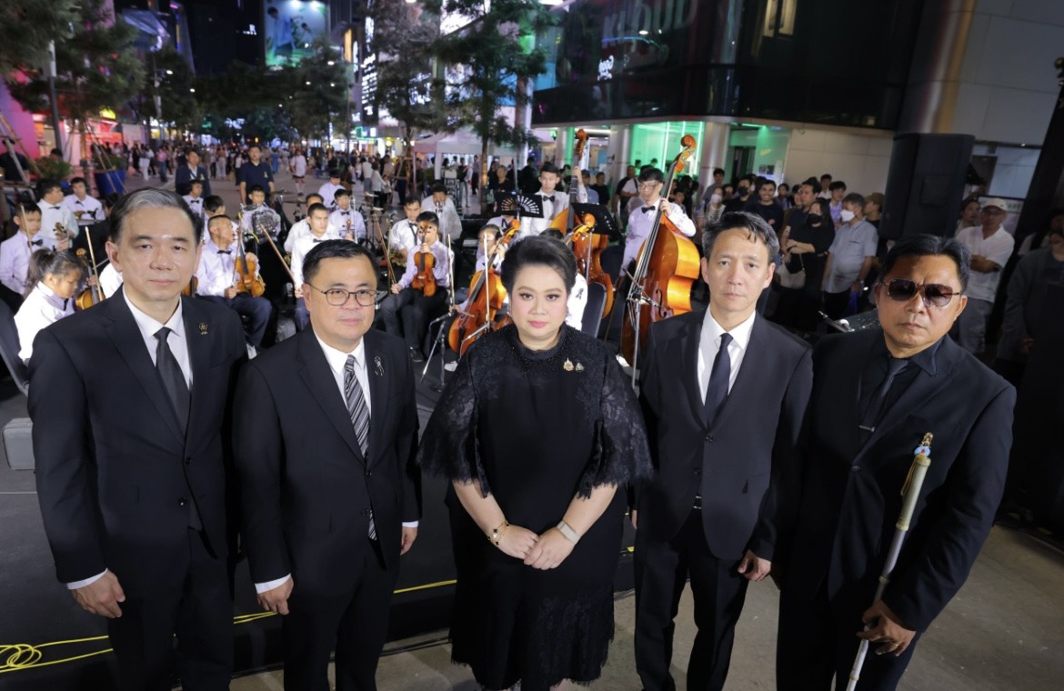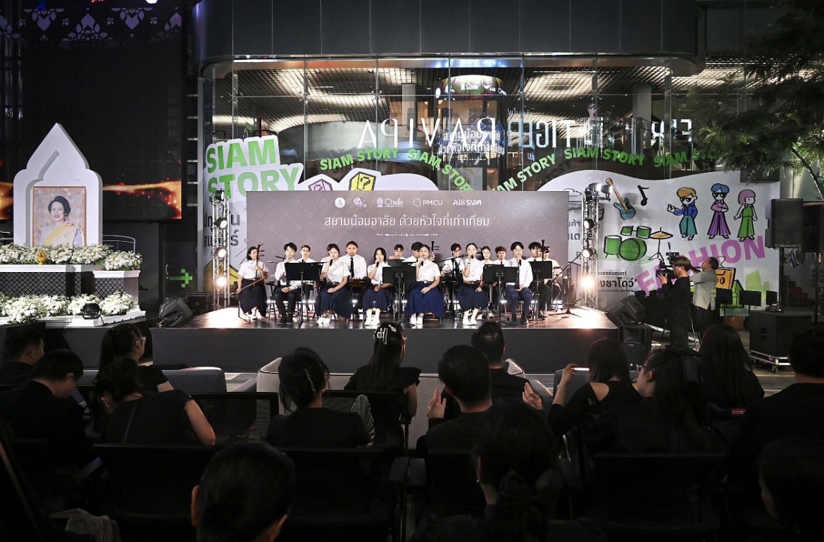 บรรยากาศภายในงานบริเวณหน้าอาคาร AIS SIAM และตลอดเส้นทาง SIAM Walking Street เต็มเปี่ยมไปด้วยความซาบซึ้ง และความสง่างาม จากการแสดงดนตรีไทยโดยคณะครุศาสตร์ จุฬาลงกรณ์มหาวิทยาลัย รวมถึงกิจกรรมแสดงความอาลัยรูปแบบพิเศษผ่านอักษรเบรลล์สำหรับผู้พิการ พร้อมส่งต่อคำไว้อาลัยขึ้นจอกลางสยาม นอกจากนี้ยังมีการบรรเลง–ขับร้องบทเพลง “แม่แห่งแผ่นดิน” โดยวงออร์เคสตร้าคนตาบอดแห่งประเทศไทย นับว่าสะท้อนถึงพลังแห่งความจงรักภักดี และความร่วมมือของทุกคนในสังคม ที่มุ่งมั่นสร้างพื้นที่แห่งความเท่าเทียมร่วมกัน