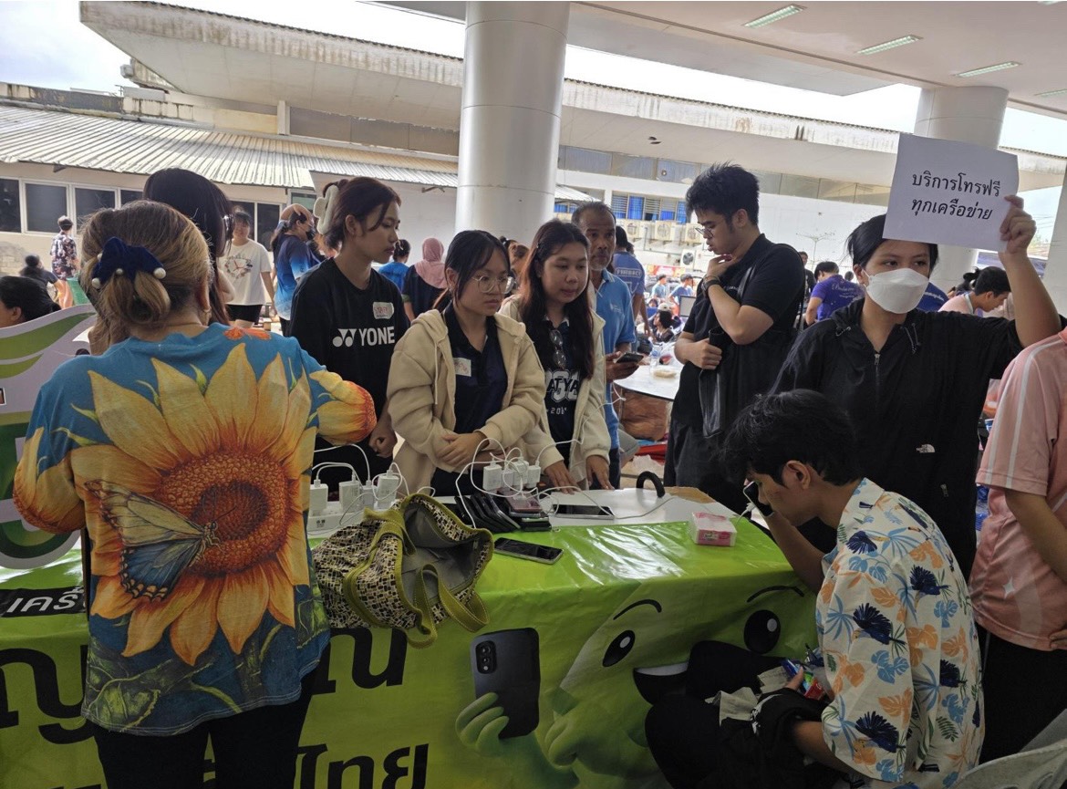 2. สนับสนุนระบบสื่อสารอย่างเต็มกำลังในพื้นที่และศูนย์อพยพ อำนวยความสะดวกเพิ่มจุดให้บริการโทรฟรี และบริการ AIS Free WiFi สำหรับผู้ที่อยู่ศูนย์อพยพ มหาวิทยาลัยสงขลานครินทร์ เพื่อติดต่อสื่อสารไปยังครอบครัวหรือผู้ที่ห่วงใย พร้อมขยายสัญญาณเครือข่ายอย่างเต็มกำลัง และสแตนบายรถโมบาย โดยมีทีมวิศวกรมอนิเตอร์และดูแลเครือข่าย 24 ชั่วโมง