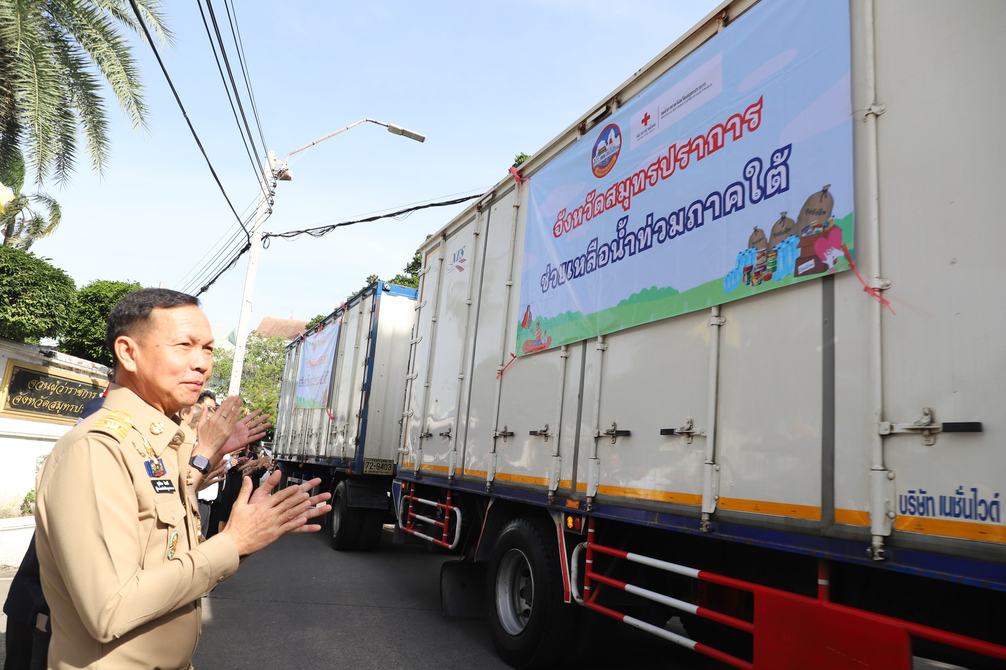 "ผู้ว่าฯสมุทรปราการ" ปล่อยขบวนรถนำสิ่งของเครื่องอุปโภค บริโภค และสิ่งของจำเป็นในการดำรงชีวิตประจำวัน ที่ชาวปากน้ำบริจาคผ่านสำนักงานเหล่ากาชาดจังหวัดฯ ส่งต่อธารน้ำใจช่วยเหลือผู้ประสบอุทกภัยภาคใต้