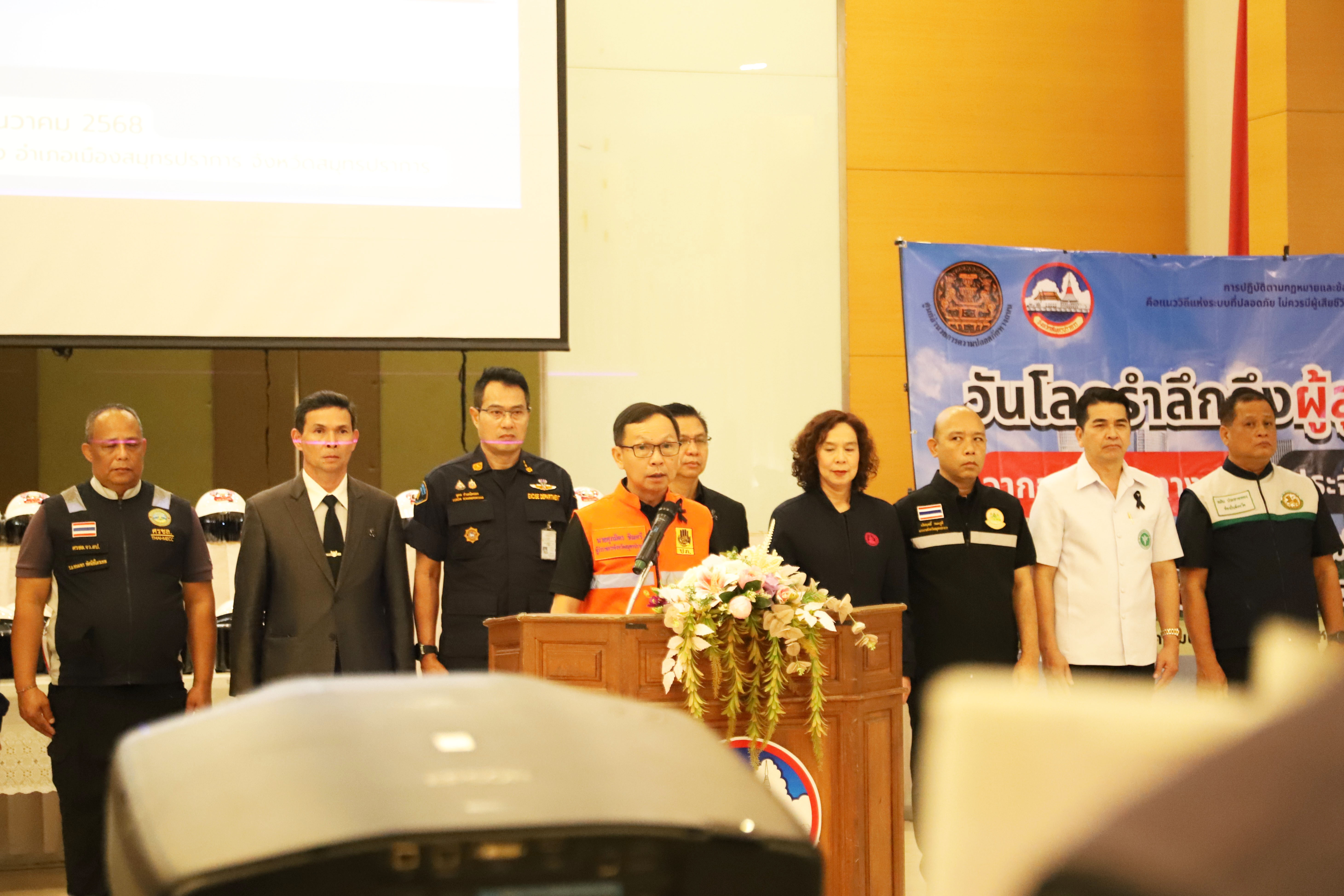 สมุทรปราการจัดกิจกรรม “วันป้องกันอุบัติภัยแห่งชาติและวันโลกรำลึกถึงผู้สูญถึงผู้สูญเสียจากอุบัติเหตุทางถนน” (World Day of Remembrance for Road Traffic Victims) ประจำปี 2568 พร้อมเปิดศูนย์ปฏิบัติการป้องกันและลดอุบัติเหตุทางถนนและทางน้ำในช่วงเทศกาลปีใหม่ 69