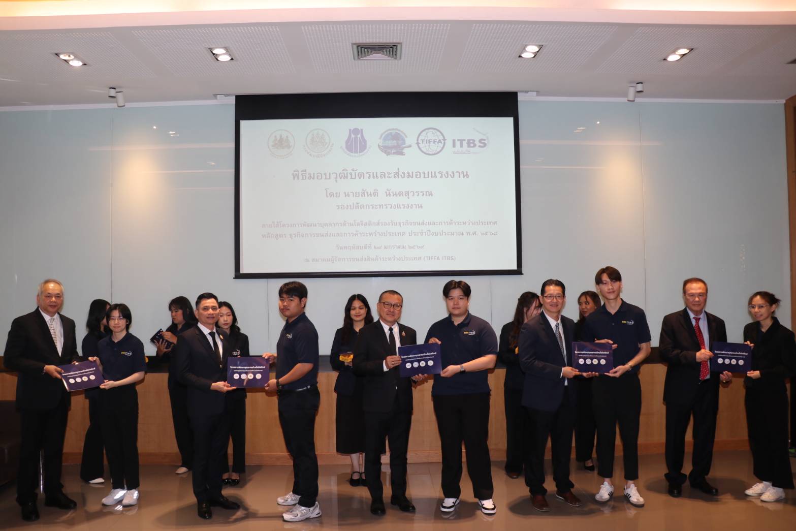วันที่ 29 มกราคม 2569 รัฐมนตรีว่าการกระทรวงแรงงาน มอบหมายนายสันติ นันตสุวรรณ รองปลัดกระทรวงแรงงาน เป็นประธานมอบวุฒิบัตรให้แก่ผู้ผ่านการฝึกอบรมหลักสูตรธุรกิจขนส่งและการค้าระหว่างประเทศ จำนวน 3 รุ่น 150 คน ภายใต้โครงการพัฒนาบุคลากรด้านโลจิสติกส์รองรับธุรกิจขนส่งและการค้าระหว่างประเทศ โดยมีนายสมชาติ สุภารี รองอธิบดีกรมพัฒนาฝีมือแรงงาน และผู้บริหารกรมฯ ให้การต้อนรับ ณ สมาคมผู้รับจัดการขนส่งสินค้าระหว่างประเทศ เขตบางนา กรุงเทพฯ