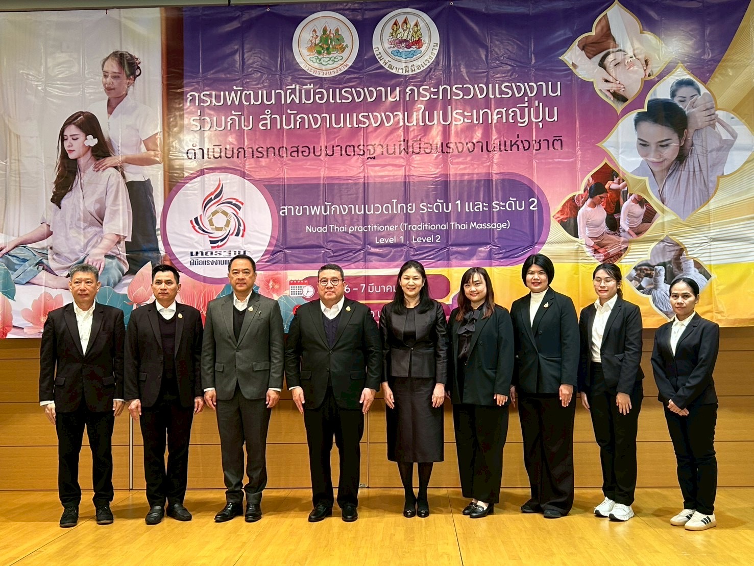 นายสมาสภ์ ปัทมะสุคนธ์ อธิบดีกรมพัฒนาฝีมือแรงงาน กล่าวเสริมว่า กรมพัฒนาฝีมือแรงงาน ร่วมกับสถานเอกอัครราชทูต ณ กรุงโตเกียว และสำนักงานแรงงานในประเทศญี่ปุ่น จัดโครงการส่งเสริมศักยภาพมาตรฐานฝีมือแรงงานไทยในต่างประเทศ และทดสอบมาตรฐานฝีมือแรงงานแห่งชาติ สาขาพนักงานนวดไทย ระดับ 1 และระดับ 2 ระหว่างวันที่ 6–7 มีนาคม 2569 มีผู้สมัครเข้าทดสอบรวม 28 คน ซึ่งผู้ผ่านการทดสอบจะได้รับหนังสือรับรองมาตรฐานฝีมือแรงงานแห่งชาติจากกรมพัฒนาฝีมือแรงงาน เพื่อยกระดับทักษะแรงงานไทยในต่างประเทศให้มีมาตรฐาน เป็นที่ยอมรับในระดับสากล และเพิ่มโอกาสในการประกอบอาชีพและขยายธุรกิจนวดและสปาในตลาดต่างประเทศ
