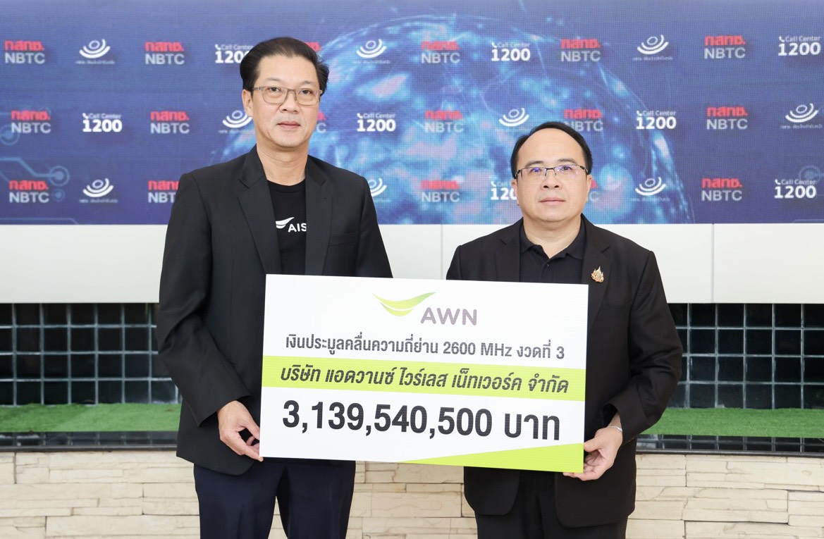 บริษัท แอดวานซ์ ไวร์เลส เน็ทเวอร์ค จำกัด (AWN) ในเครือ AIS ตอกย้ำบทบาท Intelligent Infrastructure เดินหน้าเสริมสร้างโครงสร้างพื้นฐานดิจิทัลอัจฉริยะของประเทศอย่างต่อเนื่อง เพื่อรองรับการเปลี่ยนผ่านสู่เศรษฐกิจและสังคมดิจิทัลไทยในระยะยาว นำโดย นายวรุณเทพ วัชราภรณ์ หัวหน้าฝ่ายงานรัฐกิจสัมพันธ์ เอไอเอส เข้าดำเนินการชำระค่าคลื่นความถี่ 2600 MHz งวดที่ 3 เป็นจำนวนเงิน 3,139,540,500 บาท ให้แก่สำนักงาน กสทช. โดยมี นายสุทธิศักดิ์ ตันตะโยธิน รองเลขาธิการคณะกรรมการกิจการกระจายเสียง กิจการโทรทัศน์ และกิจการโทรคมนาคมแห่งชาติ (กสทช.) เป็นผู้รับมอบ เพื่อส่งมอบเป็นรายได้แผ่นดินและสนับสนุนการพัฒนากิจการโทรคมนาคมของประเทศในระยะยาว