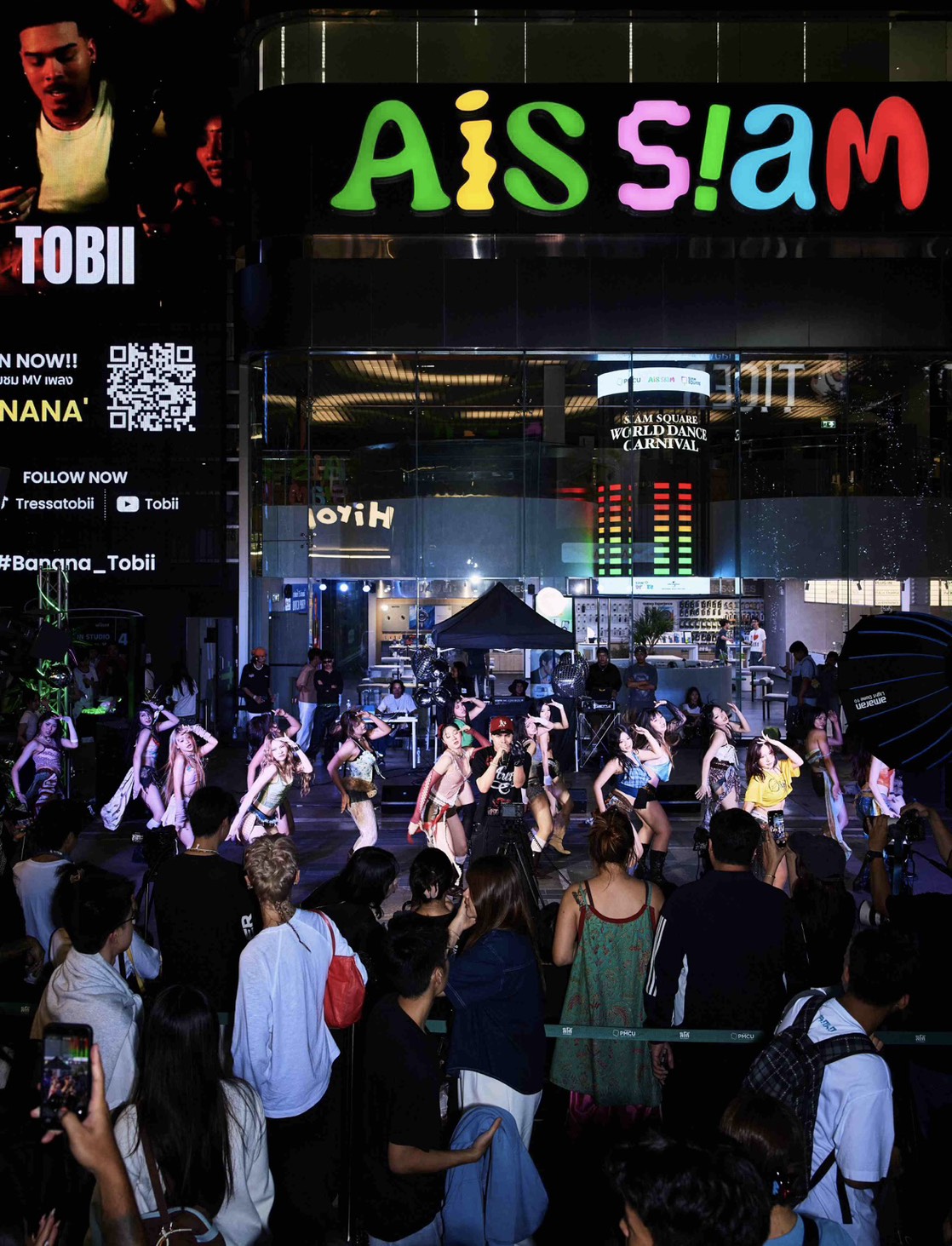 อีกหนึ่งในไฮไลต์ของกิจกรรมคือการถ่ายทอดบรรยากาศการเต้นขึ้นจอ Window of SIAM ให้ผู้ที่เดินผ่านไปมาได้ร่วมชม และร่วมโหวตทีมที่ชื่นชอบแบบ Real-time เพิ่มอรรถรสความมันส์ให้กับการ Dance Battle กันแบบเต็มอิ่ม นอกจากนี้ ภายใน AIS SIAM Community Space ชั้น 2 ยังมีกิจกรรม Just Dance ให้เหล่าเกมเมอร์สายแดนซ์ได้มาสเต็ปการเต้นตลอดทั้งวัน ก่อนปิดท้ายความมันส์ด้วยโชว์พิเศษจากแรปเปอร์ผู้หลงใหลในดนตรีฮิปฮอป ลูกครึ่งไทย-สวิสเซอร์แลนด์ อย่าง Tobii (โทบี้) มาร่วมเติมเต็มบรรยากาศ Street Dance ให้คึกคักตลอดค่ำคืน