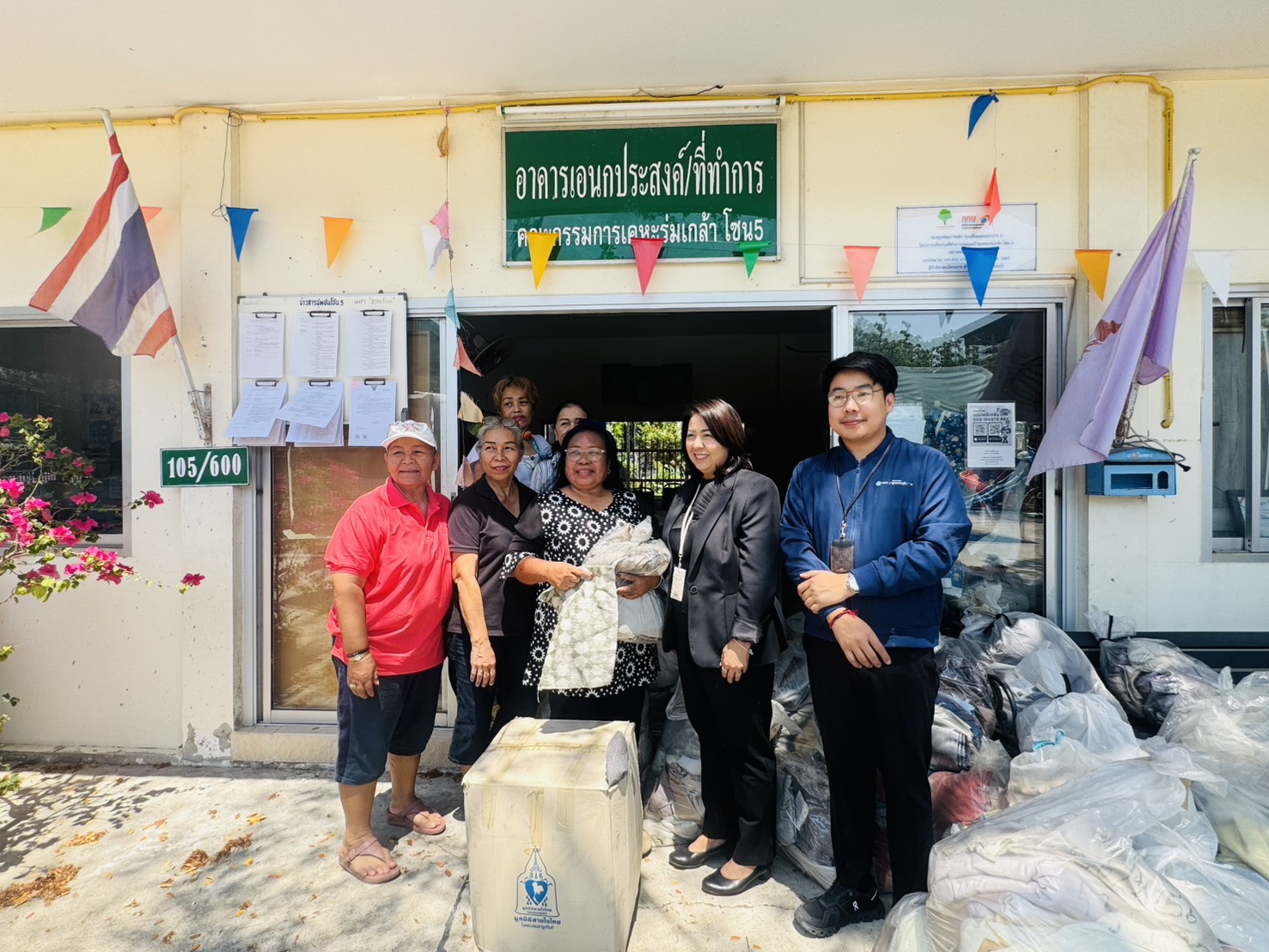 นางสาวฐิติพรญ์ เศรษฐลักษณ์ ผู้อำนวยการฝ่ายกิจการพิเศษและมวลชนสัมพันธ์ เป็นผู้แทนท่าอากาศยานสุวรรณภูมิ (ทสภ.) รับมอบเศษผ้าเหลือใช้จากมูลนิธิสายใจไทย ในพระบรมราชูปถัมภ์ โดยมีคุณพนม ดำรงค์เดช หัวหน้าฝ่ายพัฒนาอาชีพ เป็นผู้ส่งมอบ เพื่อนำไปมอบให้ชุมชนโดยรอบ ทสภ. ใช้เป็นวัตถุดิบในการผลิตงานหัตถกรรมอันเป็นการส่งเสริมอาชีพและสร้างรายได้ให้แก่ชุมชน การรับมอบเศษผ้าในครั้งนี้เป็นส่วนหนึ่งของความร่วมมือในการนำทรัพยากรที่สามารถนำกลับมาใช้ประโยชน์ใหม่ (Reuse) มาต่อยอดสร้างมูลค่าเป็นผลิตภัณฑ์หัตถกรรมของชุมชน ซึ่งไม่เพียงช่วยพัฒนาศักยภาพและสร้างรายได้ให้แก่ชุมชนเท่านั้น แต่ยังเป็นการใช้ทรัพยากรอย่างคุ้มค่าและเป็นมิตรต่อสิ่งแวดล้อม