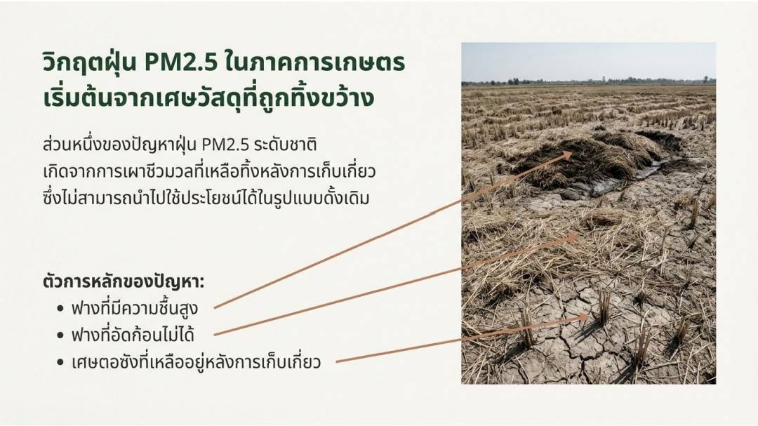 สภา มทร.สุวรรณภูมิ "ปลื้ม"คณะวิทย์ฯสุด"เจ๋ง"นำเสนอแนวทางป้องกัน และลดการเกิดฝุ่น PM 2.5 จากภาคการเกษตร ไม่เผาตอซังข้าว แต่เพิ่มมูลค่า กำจัด PM 2.5