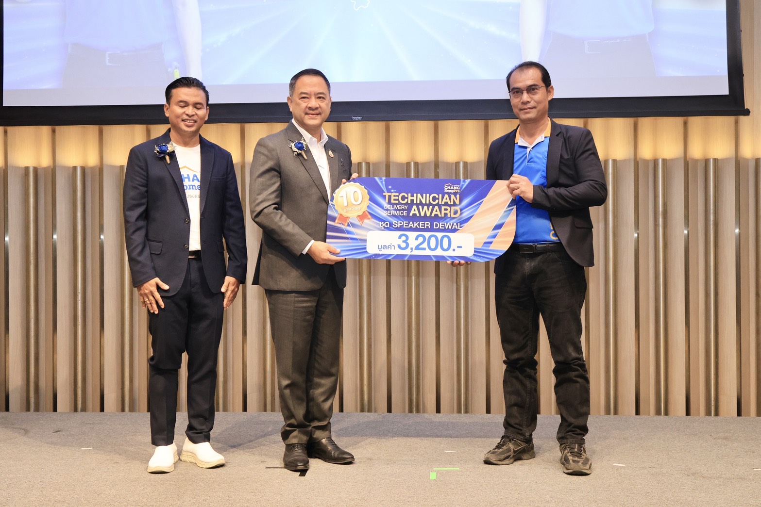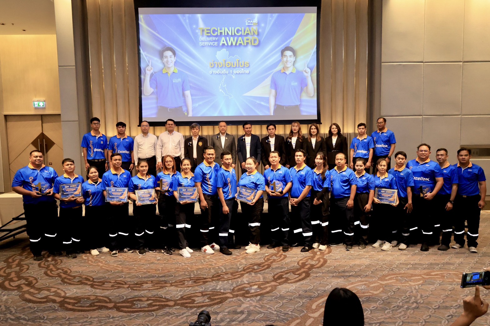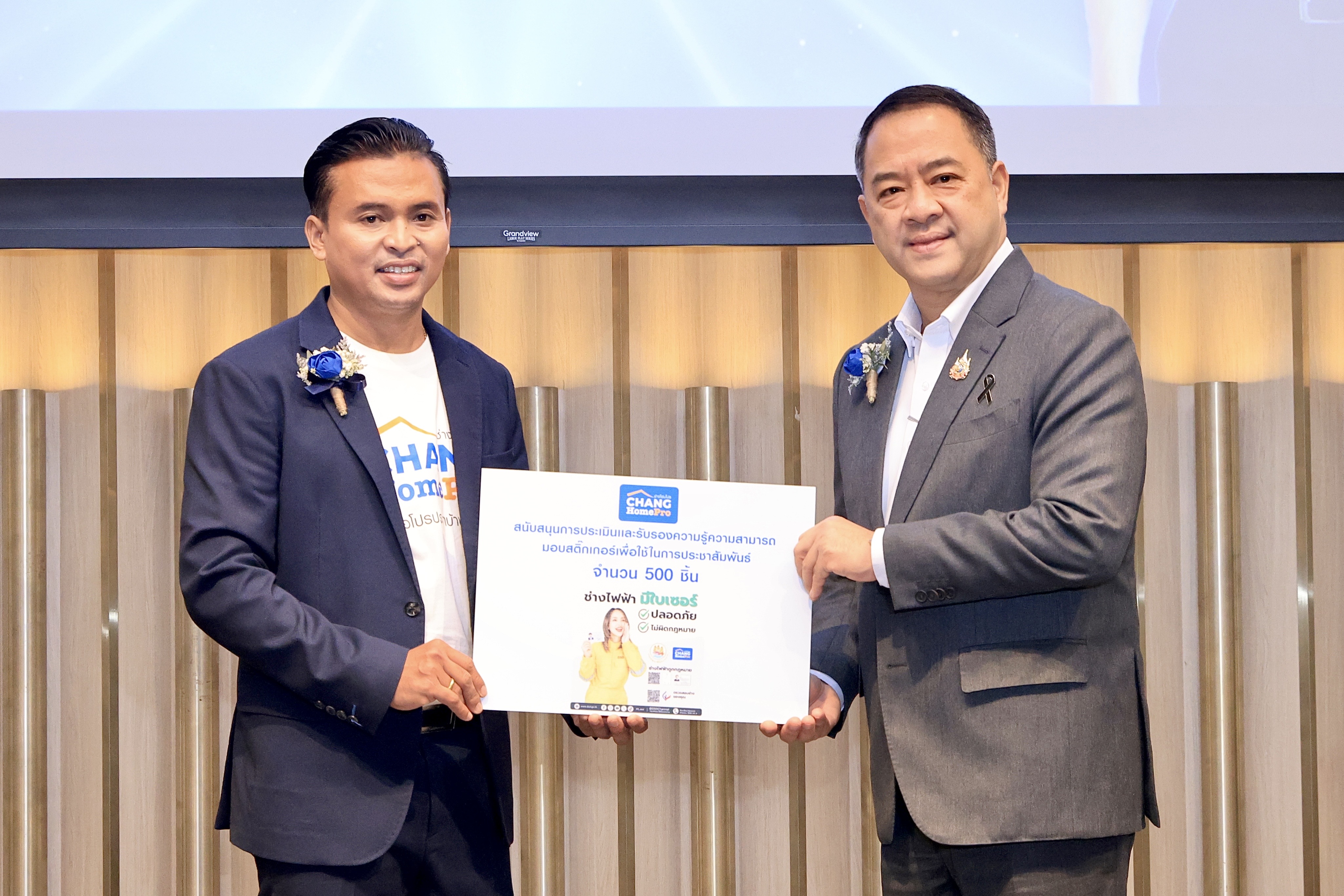 อธิบดีกรมพัฒนาฝีมือแรงงาน กล่าวต่อว่า การจัดงาน Technician and Delivery Service Award of the Year ในครั้งนี้ นับเป็นกิจกรรมที่สำคัญในการยกย่องทีมช่างและทีมขนส่งที่มีผลงานโดดเด่น ช่วยสร้างความผูกพันอันดีระหว่างช่างขนส่ง กับบริษัท สร้างแรงจูงใจในการปฏิบัติงานให้แก่ทีมช่างและทีมขนส่ง ส่งเสริมและสนับสนุนการพัฒนาฝีมือแรงงานบุคลากรสายช่างและขนส่งให้มีมาตรฐานวิชาชีพที่สูงยิ่งขึ้น ซึ่งถือเป็นกำลังแรงงานสำคัญในการขับเคลื่อนภาคบริการและเศรษฐกิจของประเทศ โดยในวันนี้ได้รับมอบสติ๊กเกอร์สัญลักษณ์ “ช่างไฟฟ้ามีใบเซอร์” จากผู้ช่วยกรรมการผู้จัดการ Chang HomePro มอบหนังสือผู้ผ่านการทดสอบมาตรฐานฝีมือแรงงานแห่งชาติ สาขาช่างไฟฟ้าภายในอาคาร ระดับ 2 จำนวน 10 คน มอบรางวัลผู้สนับสนุนดีเด่นด้านการจัดซื้อเครื่องมืออุปกรณ์งานติดตั้ง 10 รางวัล และมอบโล่รางวัล Technician and Delivery Service Award of the Year จำนวน 58 คน